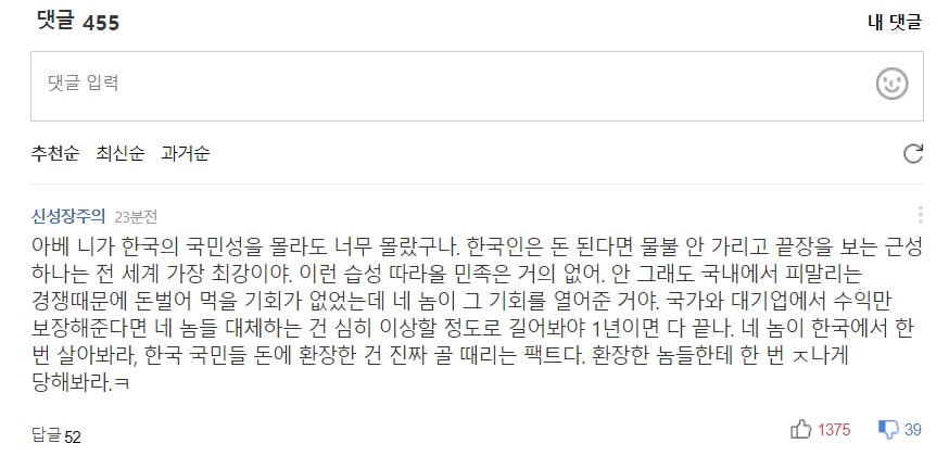 얼마 전에 일본의 경제침략 관련 기사에 이상한 댓글이 올라온다는 글을 쓴 적이 있다.