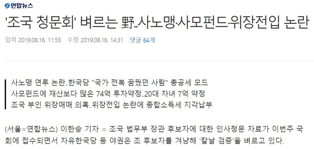 이외에도 조국 후보자 관련 기사는 수백 건이 넘는다.